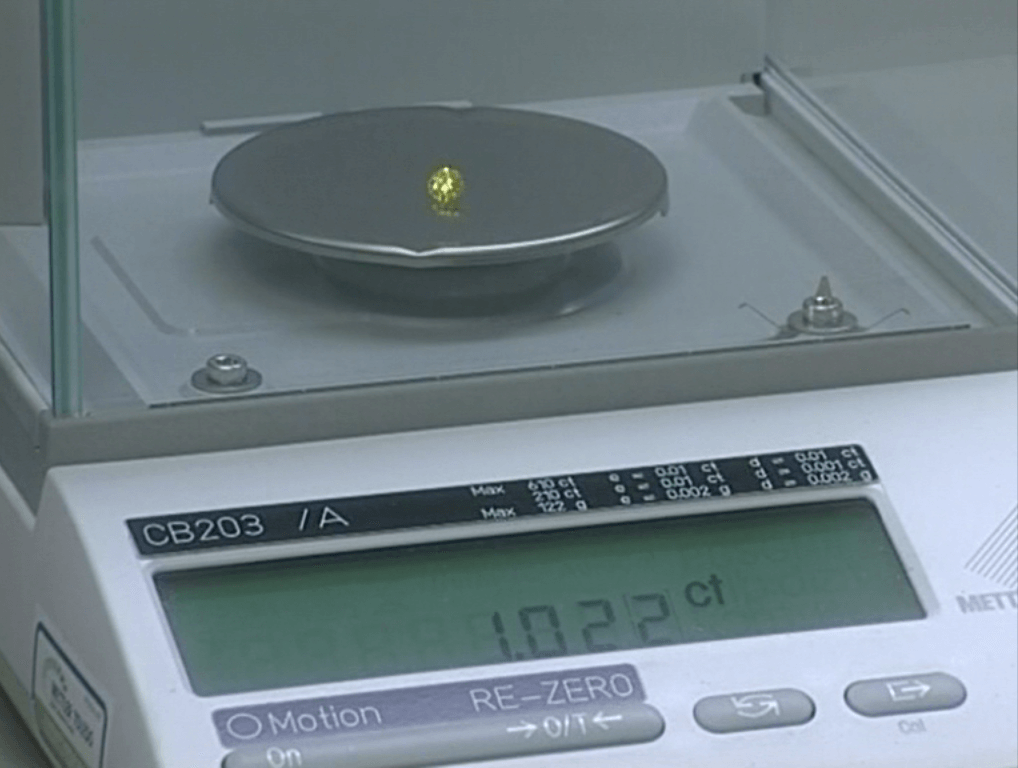 出来上がったダイヤモンドはGIA認定鑑定士により、カラット数の測量、鑑定が行われます。