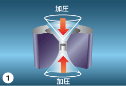 これらの装置は、5万気圧以上の超高圧と1300℃以上の超高温を発生させることができます。これらの装置により、ダイヤモンドが生成される、地球内部の非常に高温高圧な環境と同じ状態を作り出すことができます。