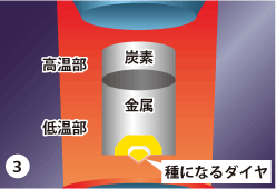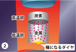 次のような流れで、圧力機のなかでダイヤモンド結晶と成長していきます。
