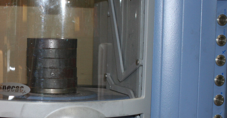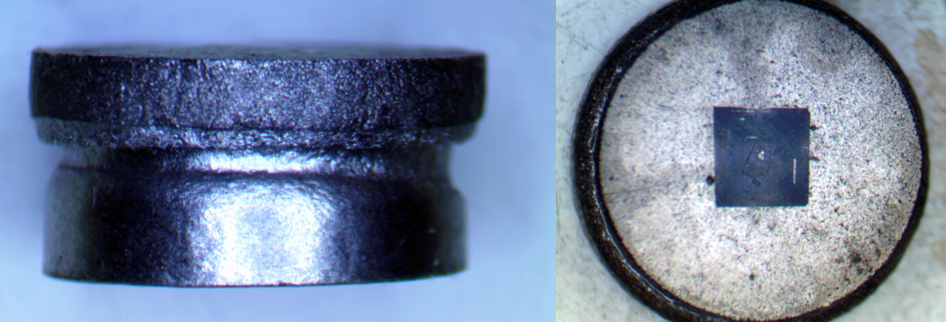 非常停止ボタン 圧力機へと入れられる、それぞれのグラファイトは、結晶核となる部分、結晶を誘導する金属とともに、高温高圧に耐えうるカプセル状にする必要があります。 これらはカプセル内で正確に配置されることが重要です。そのためカプセルは圧力機へ入る前に8トンの圧力プレスをかけられます。